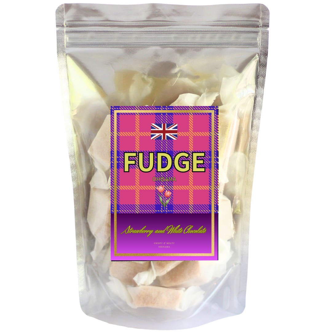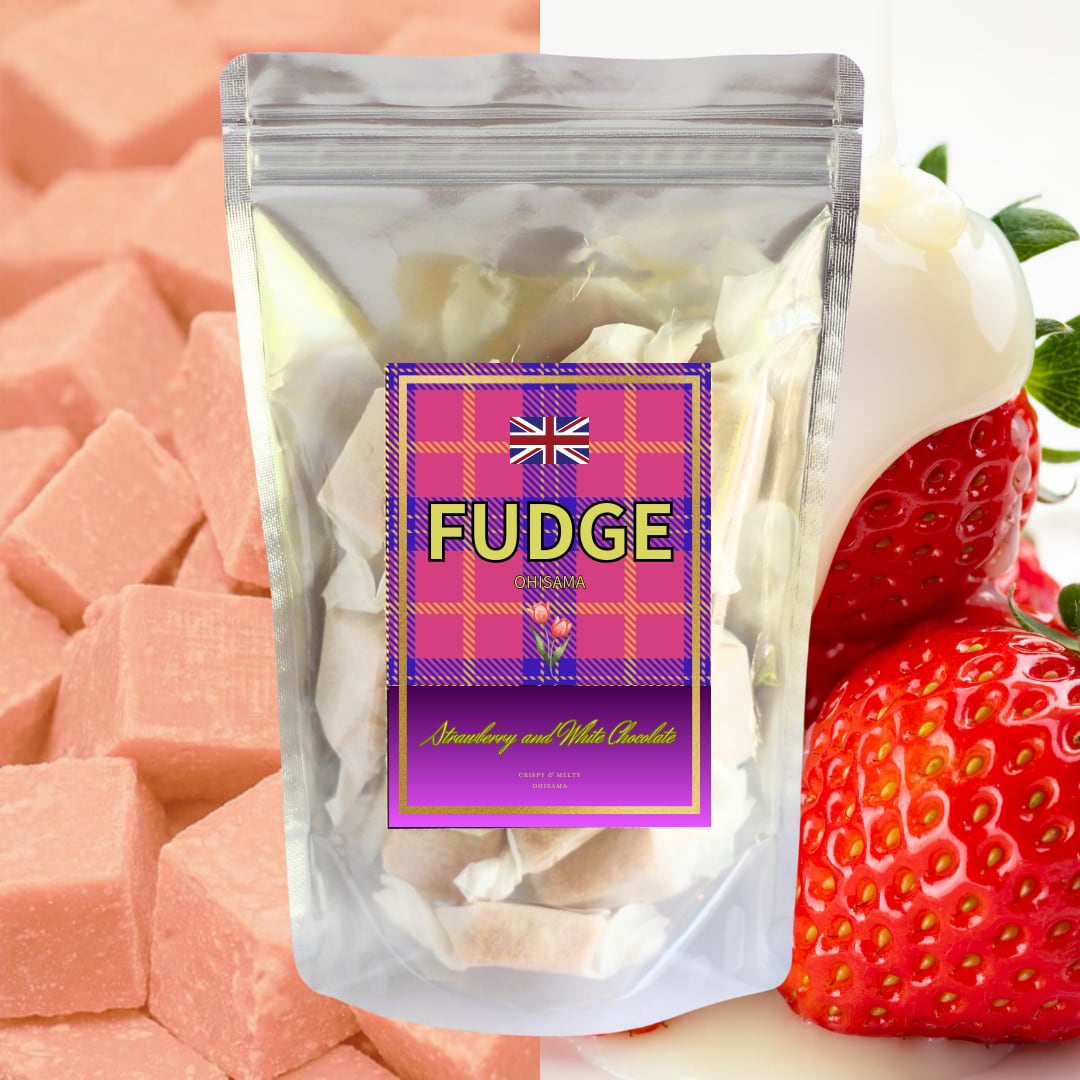 イギリスの伝統菓子「ファッジ」に、やさしい甘みのいちごミルクの味わいを重ねた、華やかな一品です。